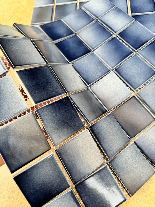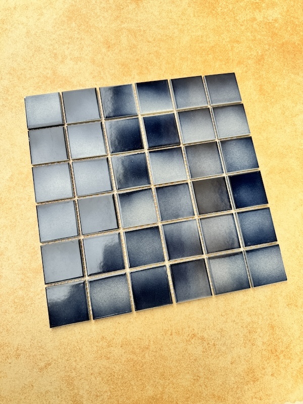 GẠCH MOSAIC GỐM MEN TRƠN MHG 48B31 Màu Sắc : Màu xanh dương ,men trơn ,bề mặt bóng, mix màu đậm nhạt Kích thước viên : 48 mm x 48 mm Kích thước vỉ: 306mm x 306mm Độ dày : 6 mm Quy cách : 1.03m2 = 11 vĩ Đóng gói : 1 thùng 22 vĩ = 2.06 m2 Cân Nặng : 25kg/Thùng Sử dụng: trang trí nội ngoại thất ,ốp trang trí phòng khách, phòng ngủ, nhà bếp,phòng tắm,ốp trang trí quán bar, spa,ốp hồ bơi khách sạn cao cấp,resort nghĩ dưỡng… Ưu điểm : dễ thi công,dễ vệ sinh,màu sắc đa dạng,không bị mốc.