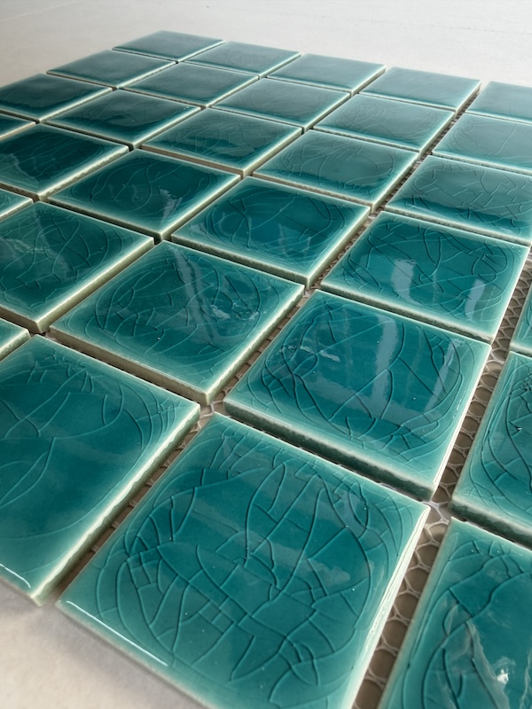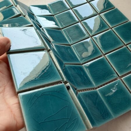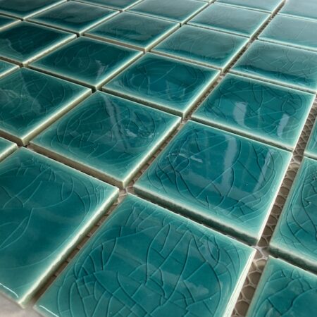 Gạch Mosaic gốm sứ được hình thành từ quá trình nấu chảy ở nhiệt độ 800 – 1300 độ C, sau đó lại được xử lý rồi cán ra thành từng viên nhỏ với kích cỡ mỗi viên có cạnh từ 2-10cm.