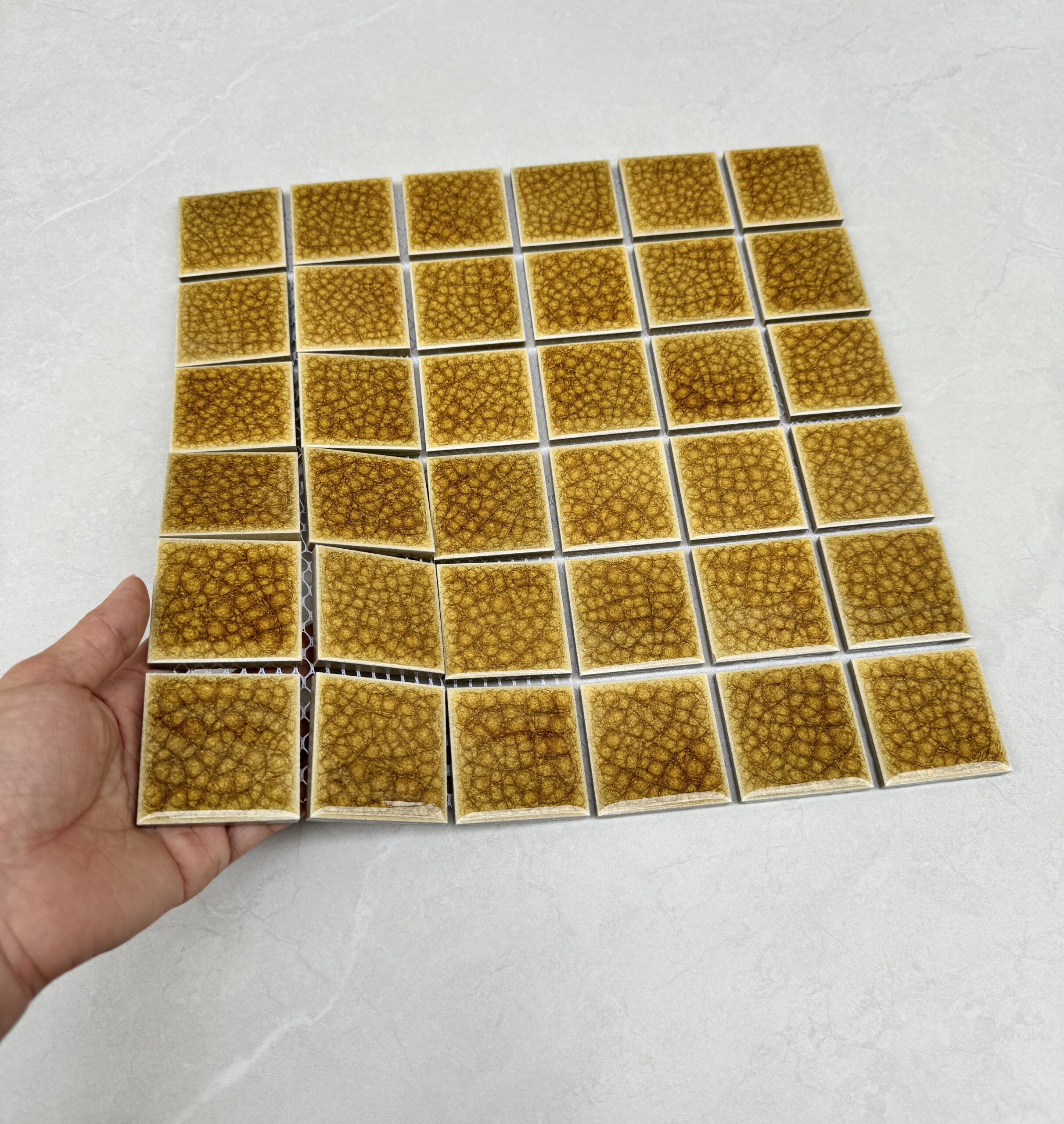 Gạch Mosaic Gốm Men Rạn 2 Lớp Màu Vàng