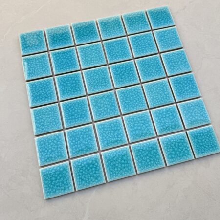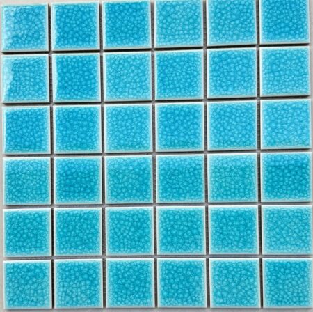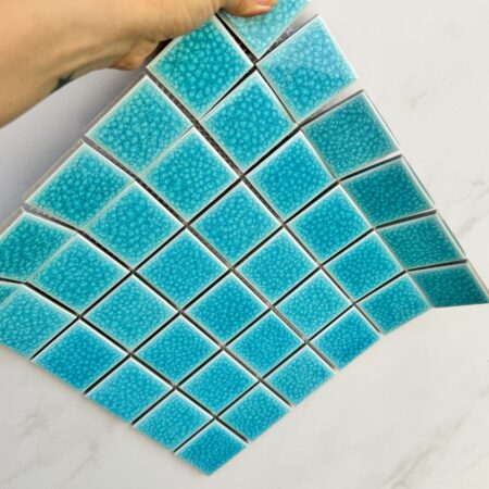 Gạch Mosaic gốm sứ được hình thành từ quá trình nấu chảy ở nhiệt độ 800 – 1300 độ C, sau đó lại được xử lý rồi cán ra thành từng viên nhỏ với kích cỡ mỗi viên có cạnh từ 2-10cm.
