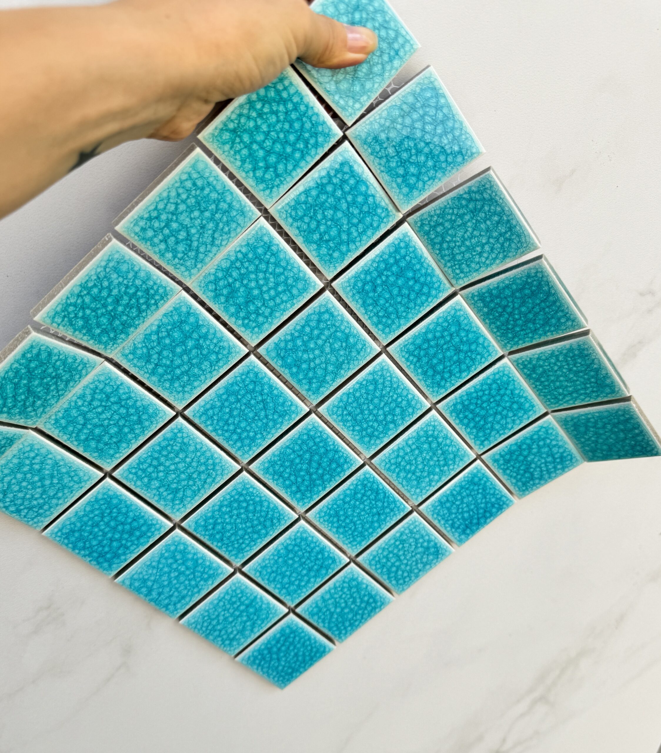 Gạch mosaic gốm có kích thước nhỏ và đóng theo vỉ nên dễ vận chuyển và thi công, các viên gạch nhỏ được gắn trên vỉ lưới Polyamide chắc chắn, không dễ bị ăn mòn bởi hóa chất và các tác động từ môi trường. Sản phẩm rất dễ vệ sinh, làm sạch bằng khăn lau và chất tẩy rửa nhẹ.