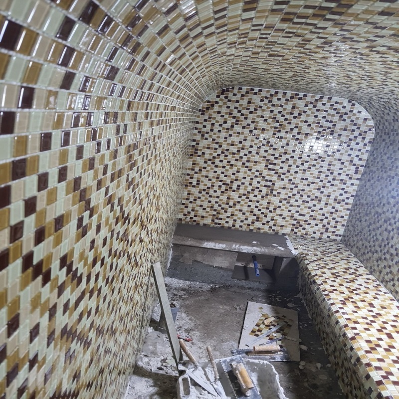 Hơn thế nữa, gạch mosaic có thể sáng tạo nhiều mảng màu nghệ thuật, hình thù, chất liệu, phối trộn thành nhiều hình hài, trên nhiều chất liệu và không gian trang trí.
