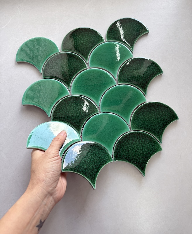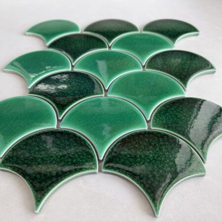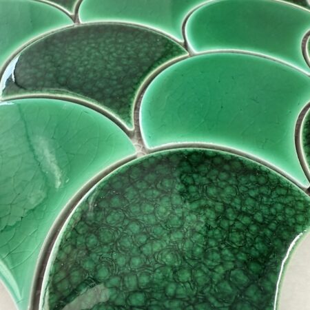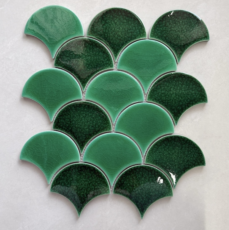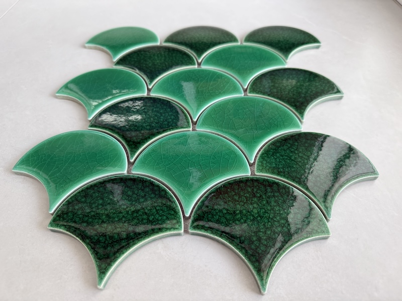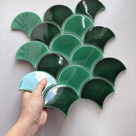 Gạch mosaic vảy cá có thiết kế độc đáo, giúp tạo điểm nhấn ấn tượng cho không gian ứng dụng. Bạn có thể sử dụng gạch vảy cá ốp bếp, phòng tắm, trang trí phòng khách, phòng ngủ