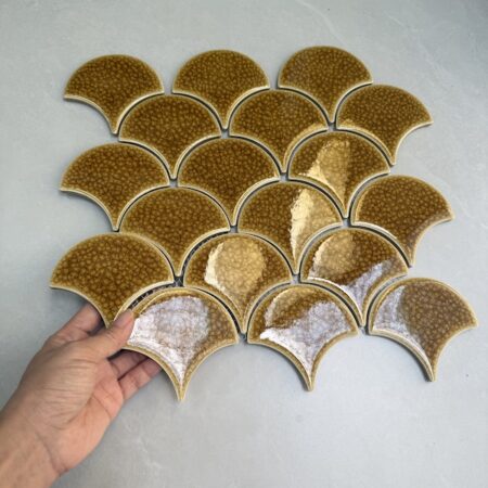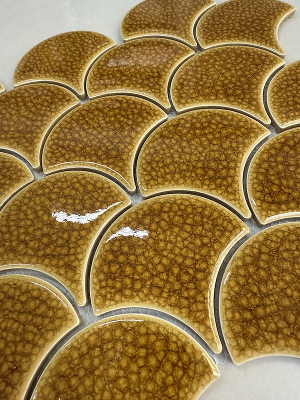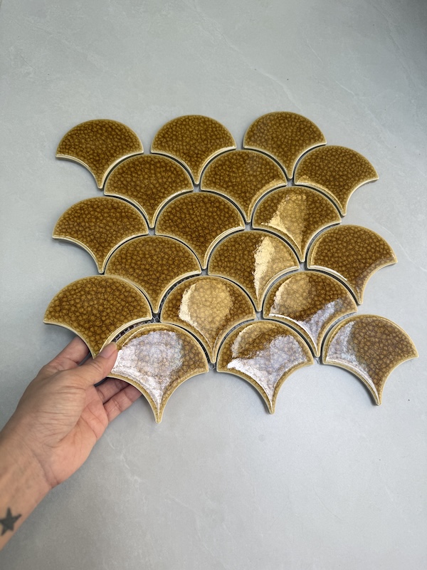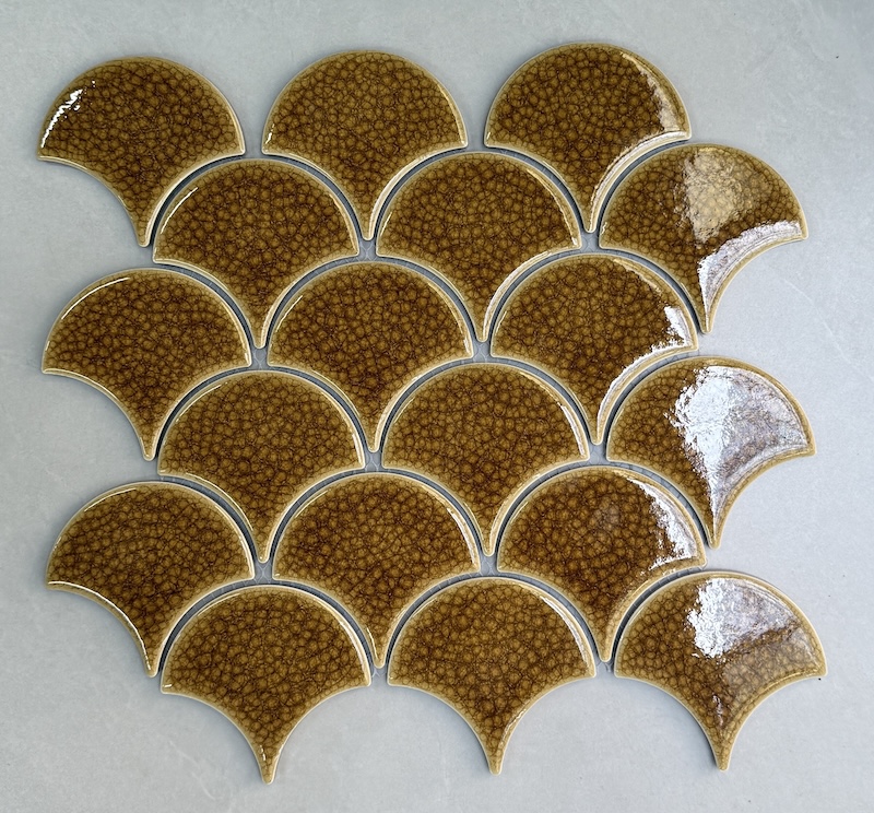Gạch mosaic vảy cá có thiết kế độc đáo, giúp tạo điểm nhấn ấn tượng cho không gian ứng dụng. Bạn có thể sử dụng gạch vảy cá ốp bếp, phòng tắm, trang trí phòng khách, phòng ngủ
