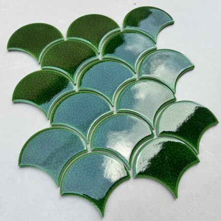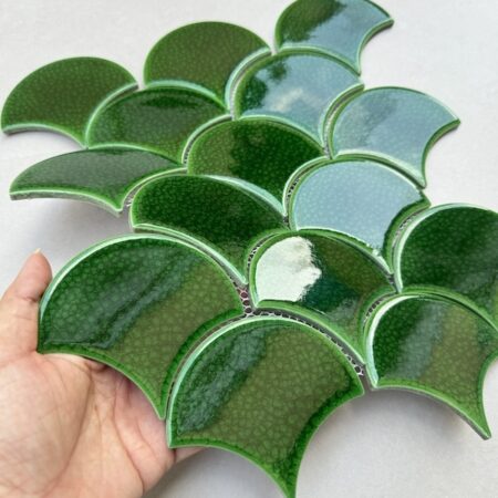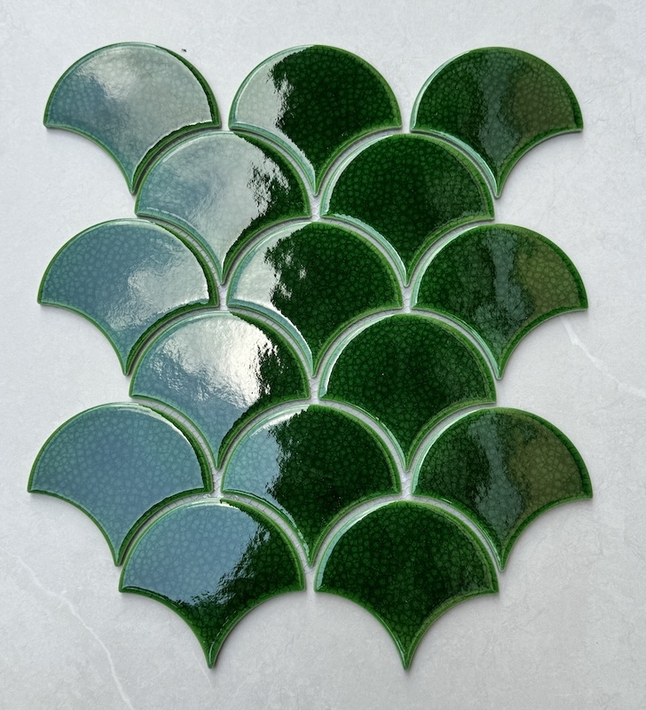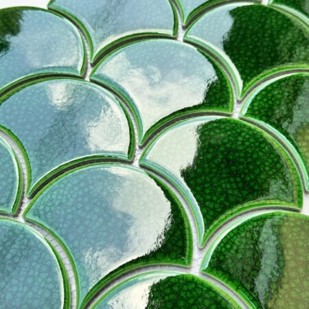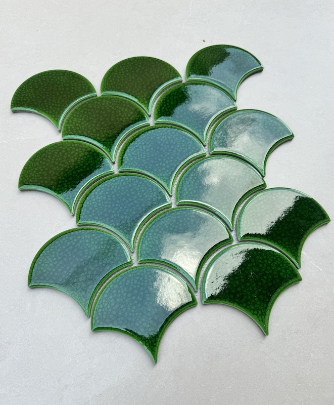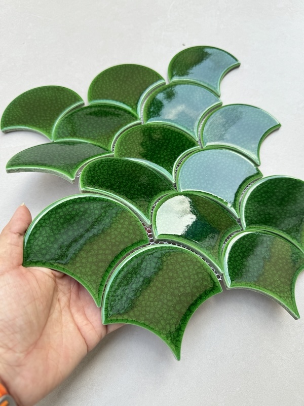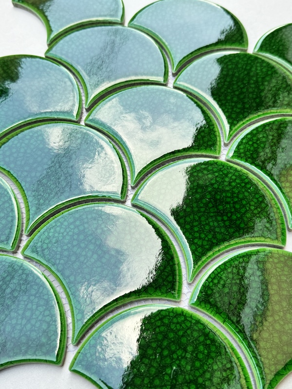 Gạch mosaic vảy cá có thiết kế độc đáo, giúp tạo điểm nhấn ấn tượng cho không gian ứng dụng. Bạn có thể sử dụng gạch vảy cá ốp bếp, phòng tắm, trang trí phòng khách, phòng ngủ