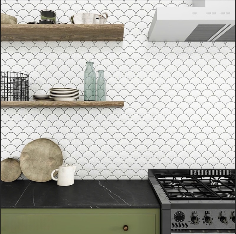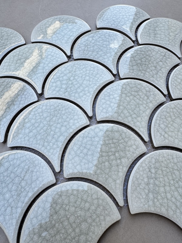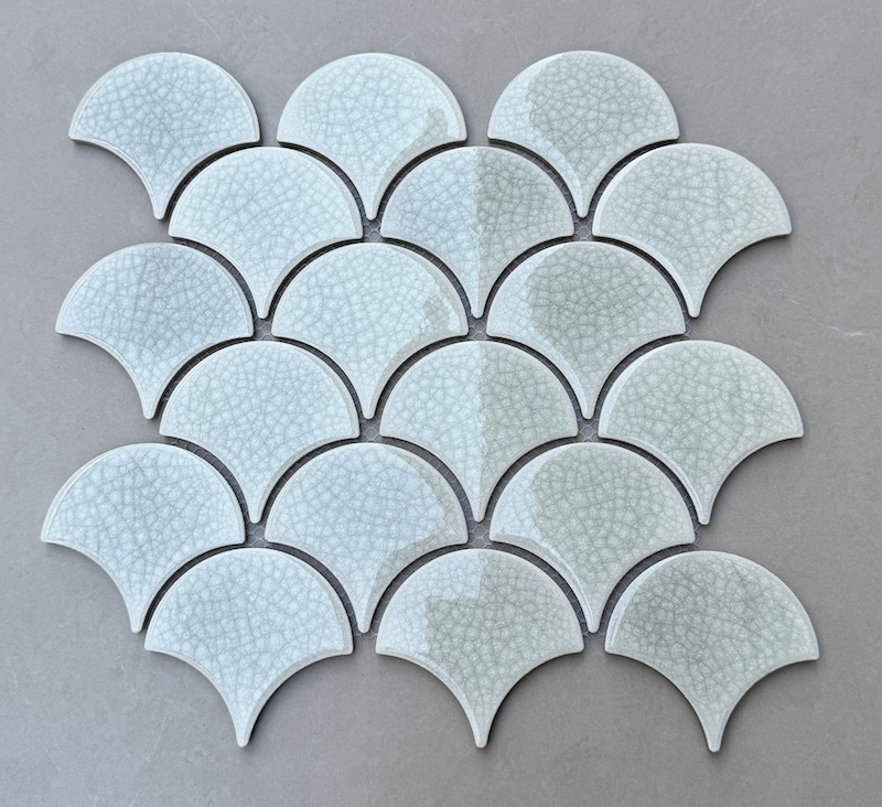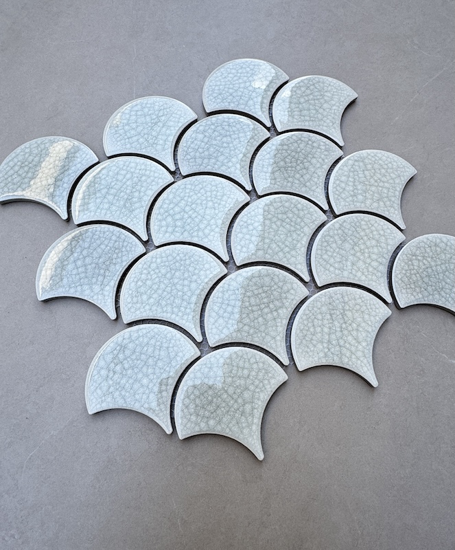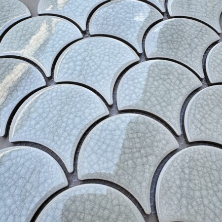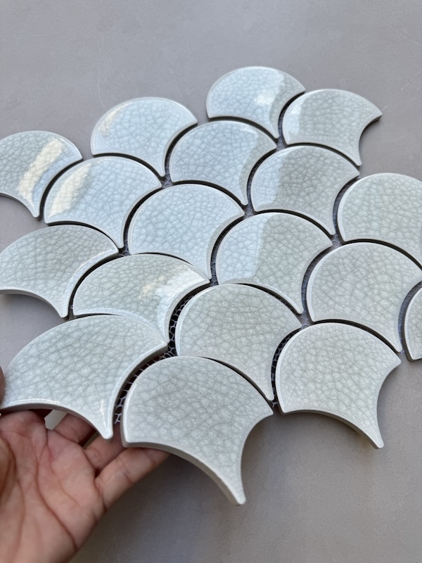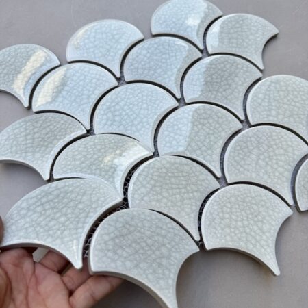 Gạch mosaic vảy cá có thiết kế độc đáo, giúp tạo điểm nhấn ấn tượng cho không gian ứng dụng. Bạn có thể sử dụng gạch vảy cá ốp bếp, phòng tắm, trang trí phòng khách, phòng ngủ