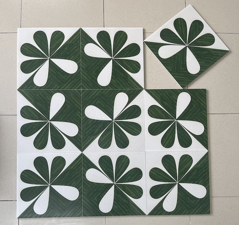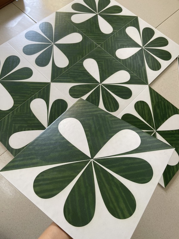 Chất liệu: porcelain Kích thước viên: 300mm x 300mm  Đóng thùng : 11 viên / thùng / m2 Cân Nặng : 14 Kg/ thùng Sử dụng: ốp tường ,gạch ốp bếp,gạch ốp nhà tắm,trang trí nội ngoại thất,… Ưu điểm : dễ thi công,dễ vệ sinh,màu sắc đa dạng,không bị mốc.