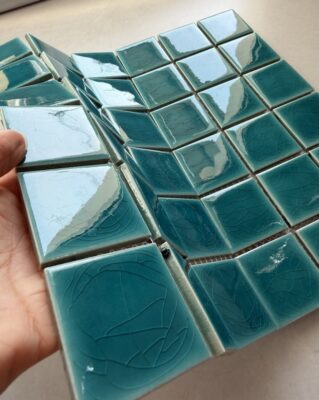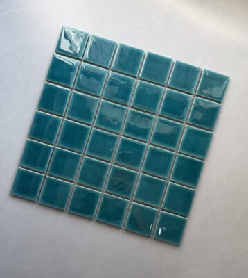 Gạch Mosaic gốm sứ được hình thành từ quá trình nấu chảy ở nhiệt độ 800 – 1300 độ C, sau đó lại được xử lý rồi cán ra thành từng viên nhỏ với kích cỡ mỗi viên có cạnh từ 2-10cm.