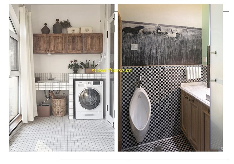 Gạch Mosaic Gốm Sứ Mix Trắng Đen 48A01