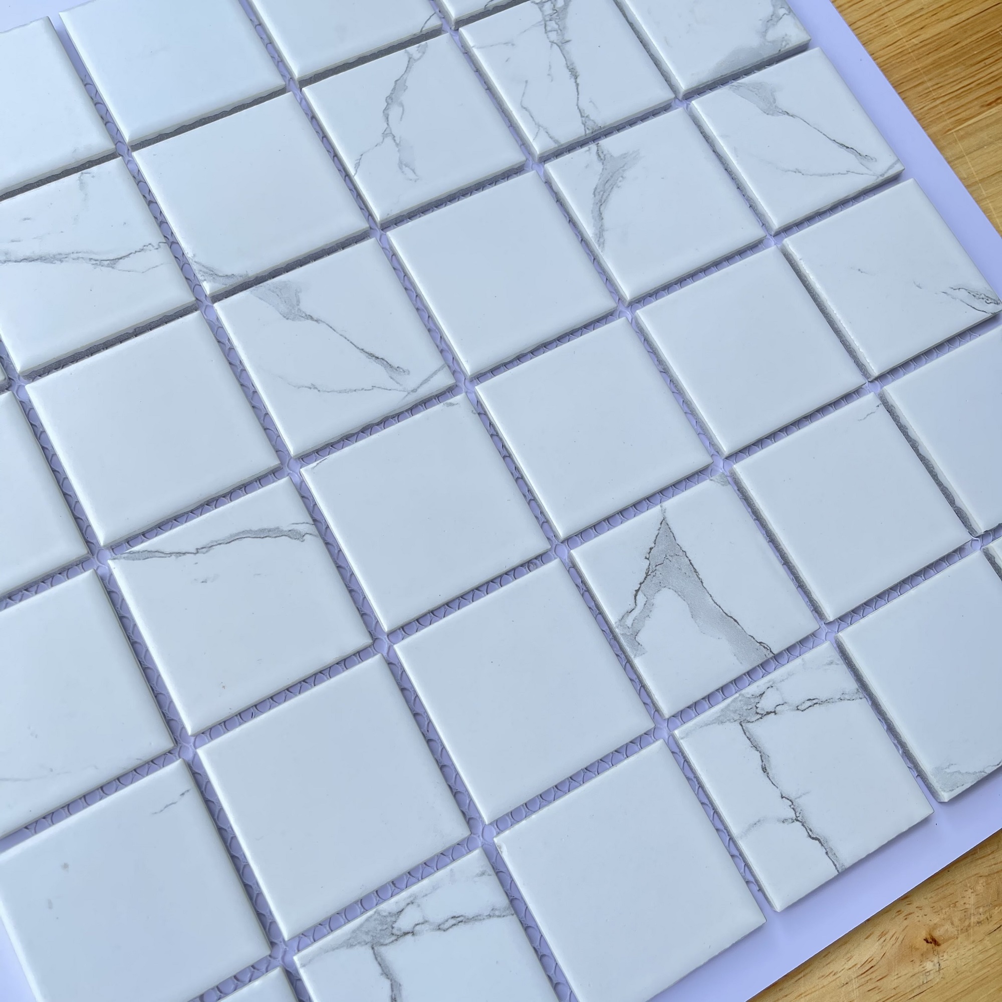 Gạch mosaic gốm có kích thước nhỏ và đóng theo vỉ nên dễ vận chuyển và thi công, các viên gạch nhỏ được gắn trên vỉ lưới Polyamide chắc chắn, không dễ bị ăn mòn bởi hóa chất và các tác động từ môi trường. Sản phẩm rất dễ vệ sinh, làm sạch bằng khăn lau và chất tẩy rửa nhẹ.