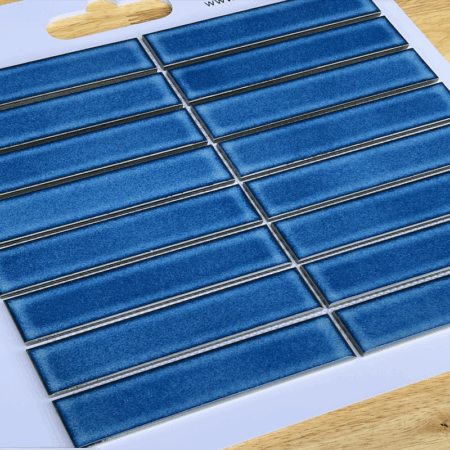 GẠCH MOSAIC QUE ĐŨA MHT 3231M Màu Sắc : Màu xanh Loại men : gốm sứ,men rạn Kích thước viên : 32.5 mm x 145 mm Kích thước vỉ: 284 mm x 296 mm Độ dày : 6.5mm Quy cách : 12 vĩ = 1m2 Đóng gói : 1 thùng 20 vĩ = 1.68m2 Cân Nặng : 21 Kg Sử dụng: Gạch mosaic que đũa thường dùng trong trang trí nội ngoại thất nhà bếp, phòng tắm, phòng ngủ,quầy bar.