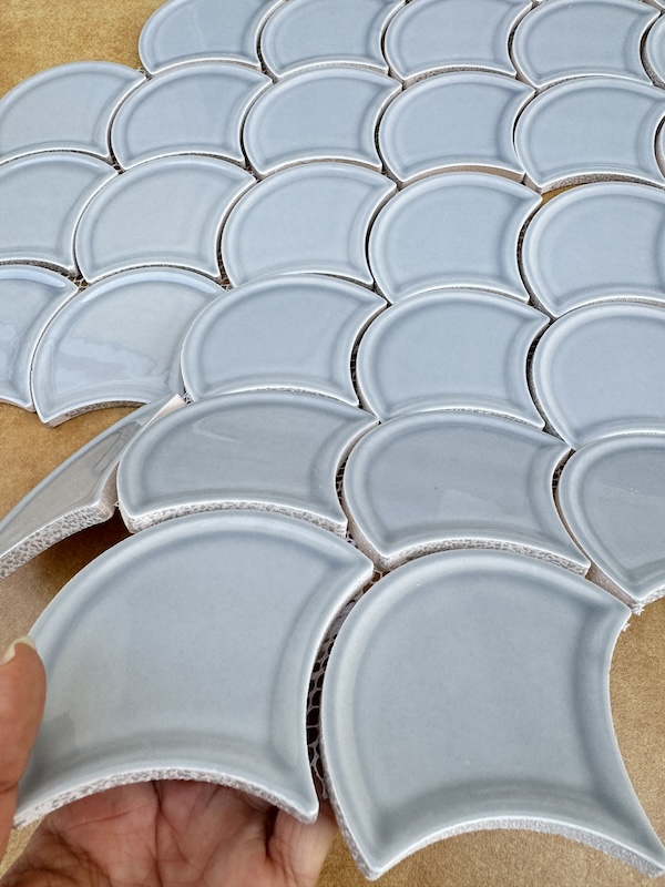 Gạch mosaic vảy cá có thiết kế độc đáo, giúp tạo điểm nhấn ấn tượng cho không gian ứng dụng. Bạn có thể sử dụng gạch vảy cá ốp bếp, phòng tắm, trang trí phòng khách, phòng ngủ