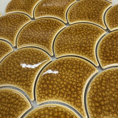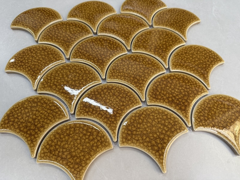 Gạch mosaic vảy cá có thiết kế độc đáo, giúp tạo điểm nhấn ấn tượng cho không gian ứng dụng. Bạn có thể sử dụng gạch vảy cá ốp bếp, phòng tắm, trang trí phòng khách, phòng ngủ