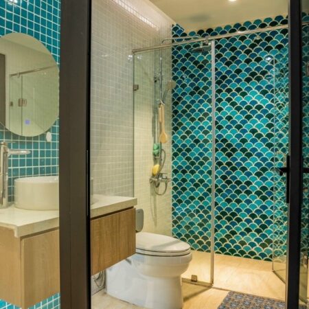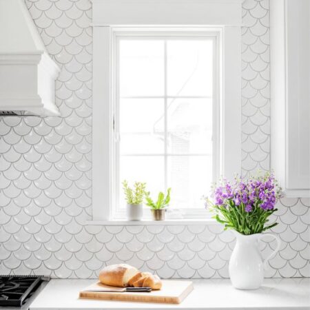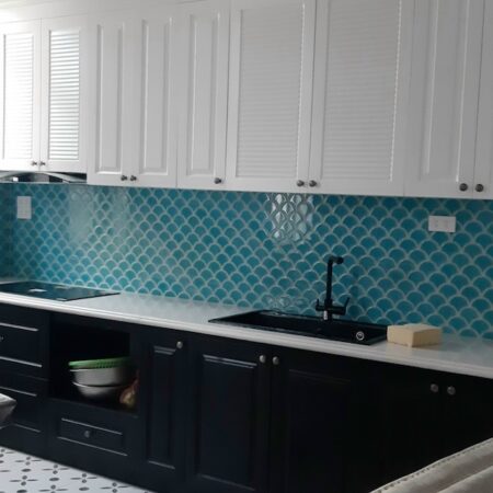 Gạch mosaic vảy cá có thiết kế độc đáo, giúp tạo điểm nhấn ấn tượng cho không gian ứng dụng. Bạn có thể sử dụng gạch vảy cá ốp bếp, phòng tắm, trang trí phòng khách, phòng ngủ