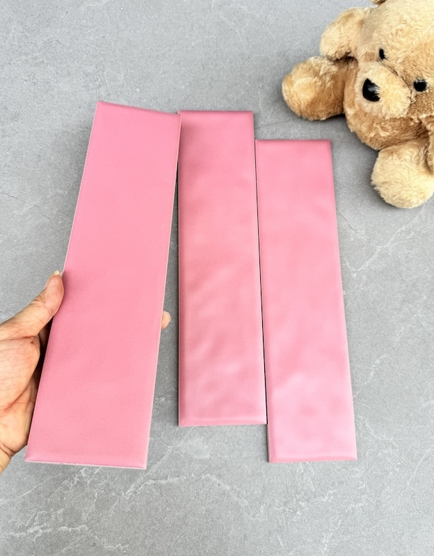 GẠCH THẺ 75316C Chất liệu : gốm sứ phủ men Màu Sắc : Màu hồng , dạng thẻ mặt gợn sóng, mờ Kích Thước : 75mm x 300mm Độ Dày : 7.5mm Quy Cách : 1 thùng 50 viên = 1.125 m2 Cân Nặng : 16 Kg Thích hợp ốp tường phòng khách, phòng ăn, nhà bếp, phòng ngủ, đại sảnh, phòng tắm, nhà vệ sinh, nhà tắm