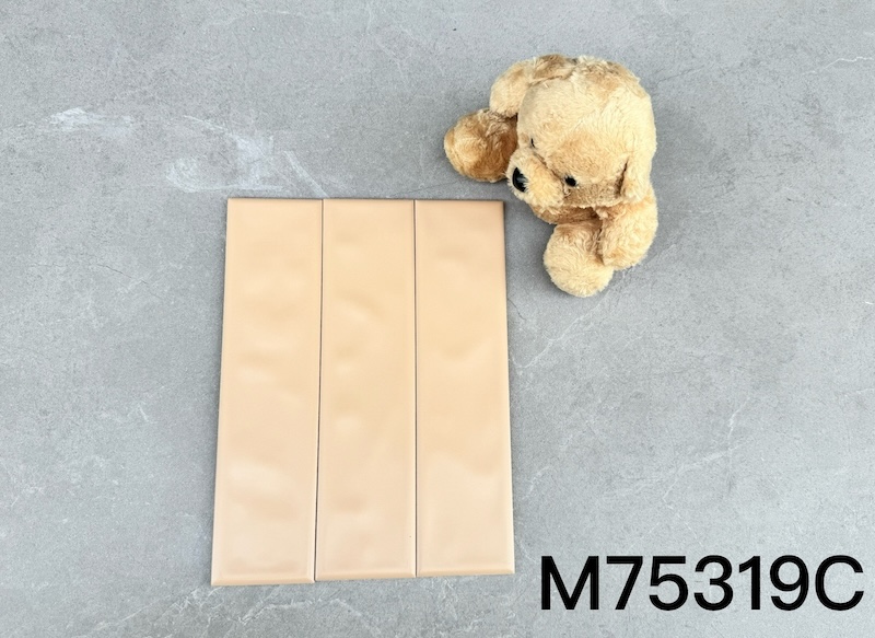 GẠCH THẺ 75319C Chất liệu : gốm sứ phủ men Màu Sắc : Màu kem , dạng thẻ mặt gợn sóng, mờ Kích Thước : 75mm x 300mm Độ Dày : 7.5mm Quy Cách : 1 thùng 50 viên = 1.125 m2 Cân Nặng : 16 Kg Thích hợp ốp tường phòng khách, phòng ăn, nhà bếp, phòng ngủ, đại sảnh, phòng tắm, nhà vệ sinh, nhà tắm